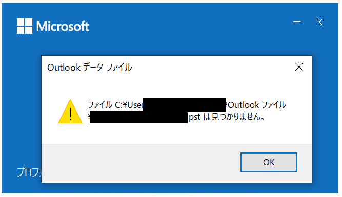 Outlook データファイル ファイル C:\…(以下割愛)は見つかりません