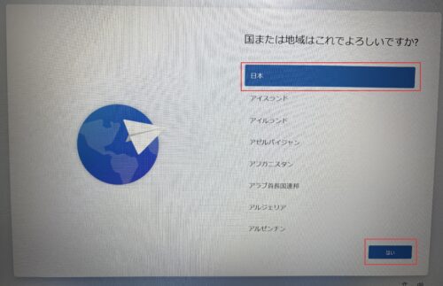 - 「日本」を選択し「はい」をクリック。