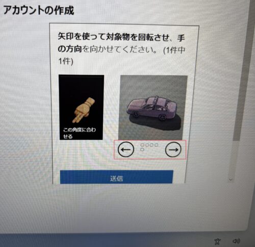 - 最後に「矢印を使って対象物を回転させる」認証を行い、アカウント作成完了。