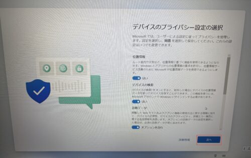 ここまででWindows11の初期設定は完了です。