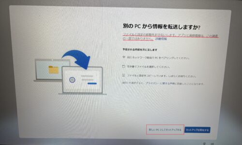 - 今回は「新しいPCとしてセットアップする」を選択。